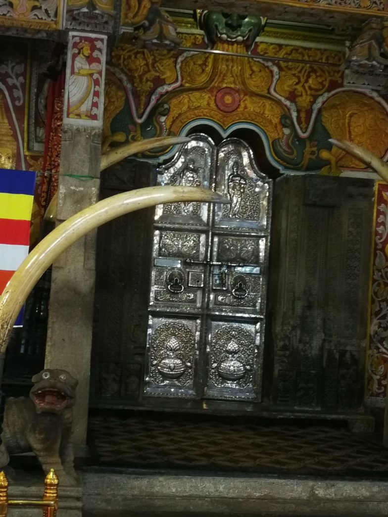 Dopo una lunga ed estenuante coda si arriva al reliquiario dove è custodito il dente (nella foto), ma si deve passare velocemente e non si possono scattare foto. Preparando bene il gruppo ad avere pazienza e spiegando l’importanza che il luogo assume per i singalesi, la visita ha un che di magico tra rulli di tamburi e l’assoluta fede dei pellegrini. Durante il mese di luglio o di agosto si svolge l’Esala Perahera, uno dei più antichi e imponenti festival buddhisti dello Sri Lanka con danzatori, giocolieri, musicisti, mangiatori di fuoco ed elefanti riccamente addobbati.